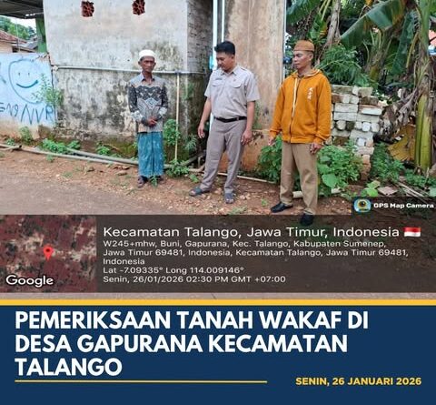 SUMENEP – Dalam upaya memastikan legalitas dan tata kelola aset keagamaan yang akuntabel, Kantor Pertanahan Kabupaten Sumenep melaksanakan kegiatan pemeriksaan lapangan terhadap tanah wakaf yang berlokasi di Desa Gapurana, Kecamatan Talango, pada Senin (26/01/2026).