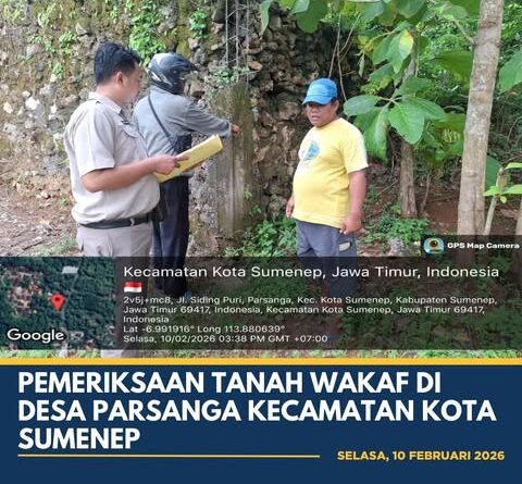 SUMENEP – Dalam upaya memastikan legalitas dan tata kelola aset keagamaan yang akurat, Kantor Pertanahan (Kantah) Kabupaten Sumenep melaksanakan kegiatan pemeriksaan lapangan terkait tanah wakaf yang berlokasi di Desa Parsanga, Kecamatan Kota Sumenep, pada Selasa (10/02/2026).
