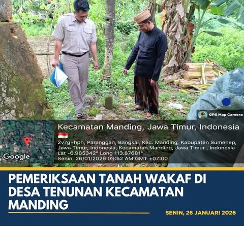SUMENEP – Dalam upaya memastikan legalitas dan tata kelola aset keagamaan yang akuntabel, Kantor Pertanahan Kabupaten Sumenep melaksanakan kegiatan pemeriksaan lapangan terhadap tanah wakaf yang berlokasi di Desa Tenunan, Kecamatan Manding, pada Senin (26/01/2026).